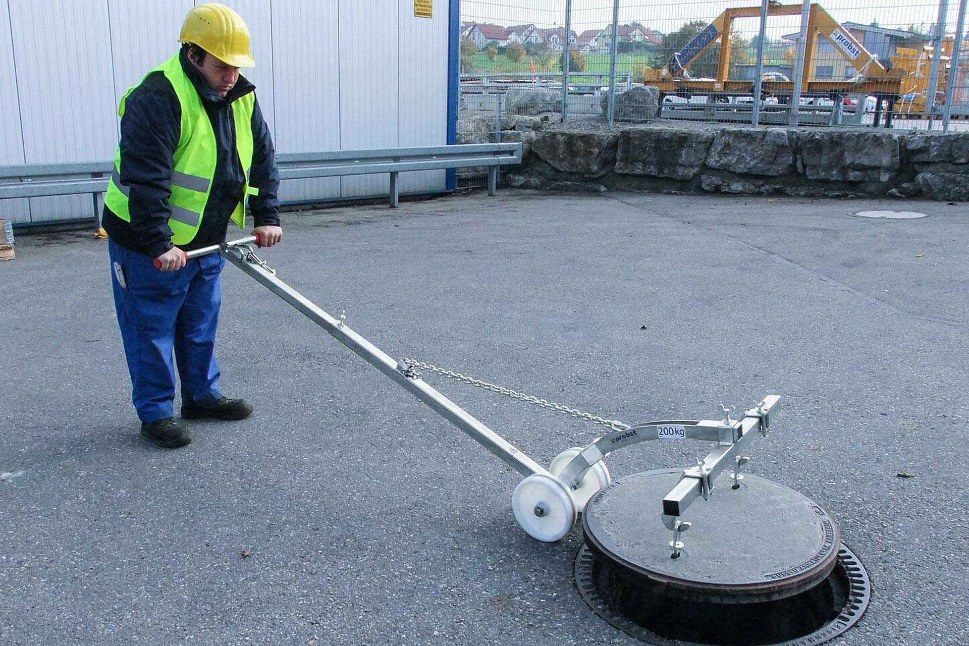 - Kleiner und leichter mechanischer Schachtdeckelheber zum Anheben von Schachtdeckeln bis Durchmesser Ø 800 mm