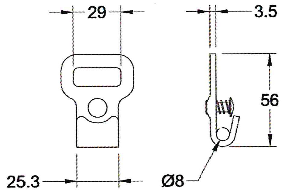 Flachhaken mit Sicherung für Bandbreite 25 mm