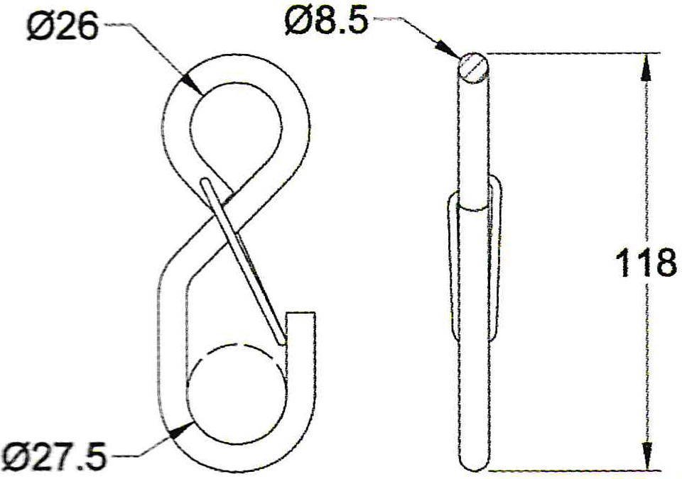 S-Haken mit Sicherung für Bandbreite 25 mm