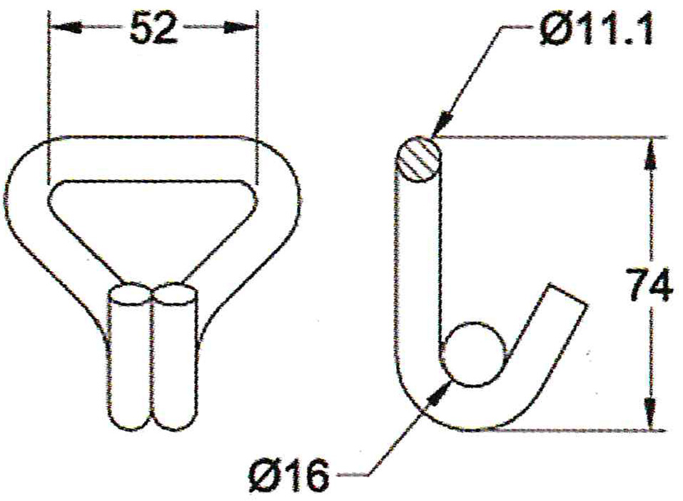 Spitzhaken für Bandbreite 50 mm, Länge 74 mm